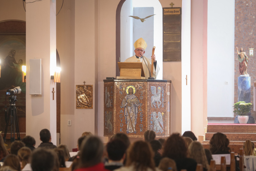 Vár ránk egy gyönyörű ország. A Szentírás úgy nevezi, a mennyek országa. Aki oda szeretne kerülni, az véleményem szerint valóban oda fog kerülni, mert a Jóisten is azt akarja, hogy oda kerüljetek, s ha ti is azt akarjátok, hogy ott legyetek, akkor a kettő együtt sikerülni fog. Istennel minden lehetséges. Mi kell ahhoz, hogy valaki a mennyek országába kerüljön? Erre a legtöbben ezt válaszolják: az, hogy jó legyen. Ez igaz, de nem elég jónak lenni, jót is kell tenni. Jót kell cselekedni a társainkkal, testvéreinkkel, szüleinkkel, nagyszüleinkkel. A tanárainkkal, a templomba járókkal és a templomba nem járókkal, illetve a jókkal és a rosszakkal is. Jót kell tenni, mert a Jóisten is felkelti napját mindenkire, akár jó, akár rossz az illető. Esőt ad mindenkinek, akár jó, akár rossz, s nekünk olyanná kell válnunk a szeretetben, mint amilyen a Jóisten. Ez nem lehetetlen. Mindegyikőtökben ott lakik Isten szeretetének Szentlelke, aki át tudja formálni annak az életét, aki együttműködik vele” – fogalmazott a főpásztor prédikációjában.