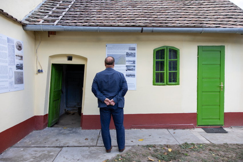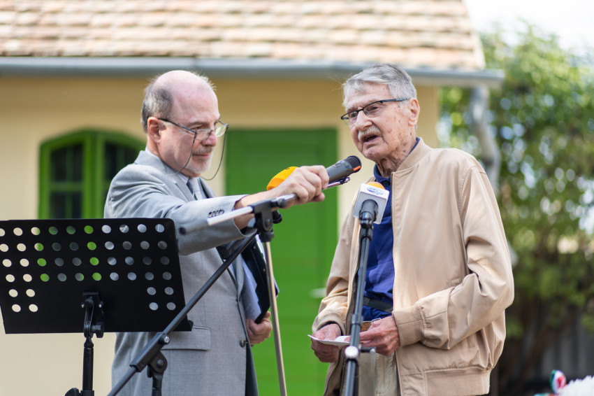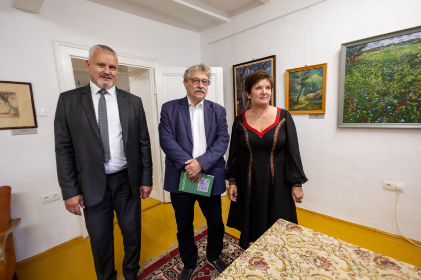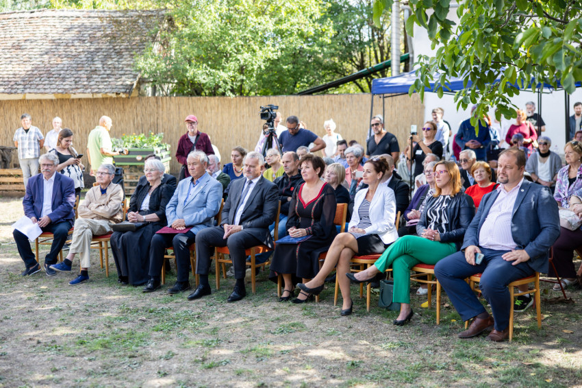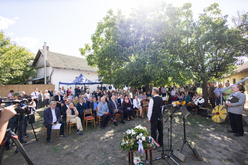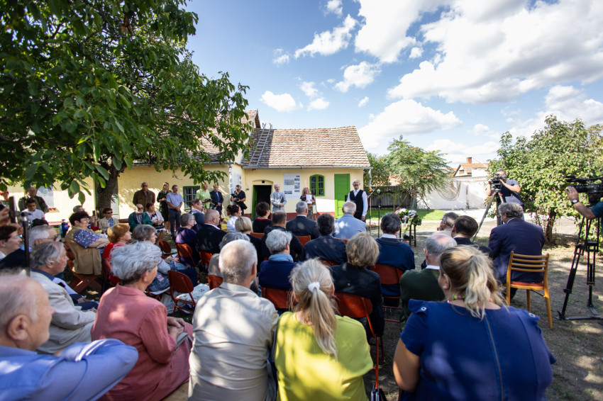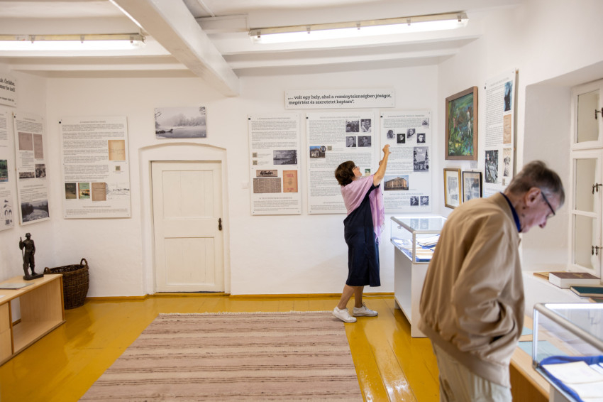 Szépen rendbe hozott, sárgára festett, stílusos egykori parasztház ad otthont a ma is népszerű író emlékhelyének, aki az idén nyolcvanéves Új Embernek is állandó munkatársa volt. A tágas udvaron népes vendégsereg gyülekezett már a megnyitó előtt fél órával a délutáni napsütésben. A jellegzetes utcafrontos épület hosszan nyúlik hátra, benne a lakószoba, ahol most a Természet és művészet című kiállítás látható, és egy hombár, ami az alföldi gabonatermesztés és -tárolás ritka értékes épen maradt emléke.