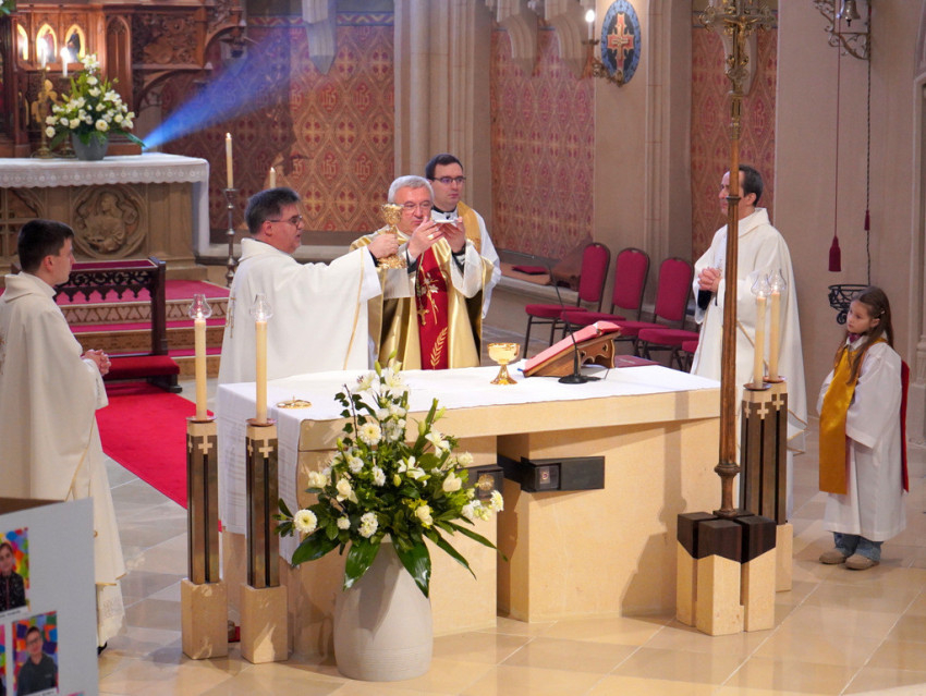 Az ünnepi szentmisén koncelebrált Németh Gábor, a Magyar Katolikus Püspöki Konferencia titkára, a Brenner János Hittudományi Főiskola rektora; Kálmán Imre püspöki irodaigazgató, plébános; Hencz Márton püspöki titkár, valamint Grafl Ákos segédlelkész.