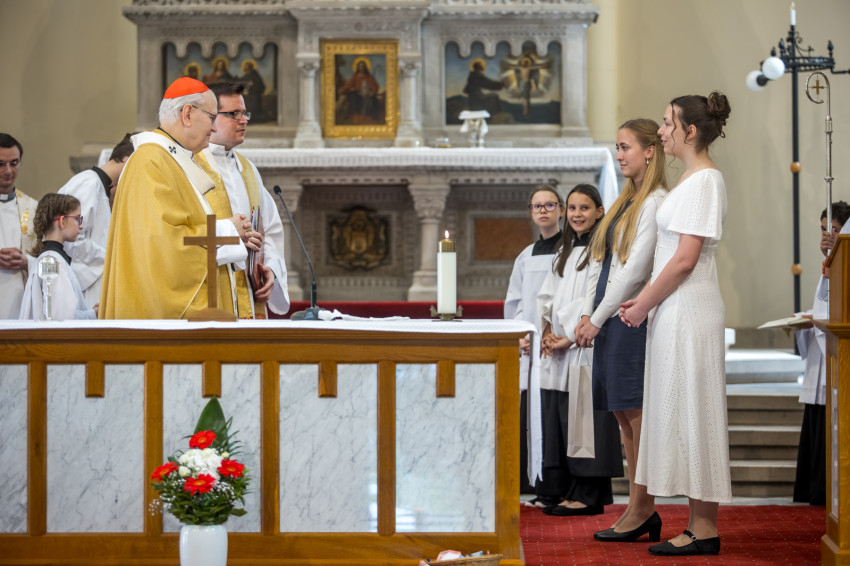 3. A mai szentmisén a bérmálás szentségét szolgáltatjuk ki. Elterjedt manapság az a felfogás, hogy itt elsősorban a bérmálkozók nagykorú döntéséről van szó. Ez azonban nem felel meg a szentség lényegének. Igaz, hogy latinul confirmatiónak nevezik ezt a szentséget, de nem azért, mert a gyerekkori ígéretet serdülő- vagy felnőttkorban megerősíti a hívő ember. Ha így volna, ez pusztán emberi döntés lenne, ami mindig hasznos, jó és szükséges, de nem csupán a bérmálás pillanatában, hanem napról-napra, akkor is, amikor elsőáldozók leszünk, amikor hittanra járunk, amikor gyakoroljuk katolikus vallásunkat, imádkozunk, igyekszünk hitünk szerint élni. Hanem