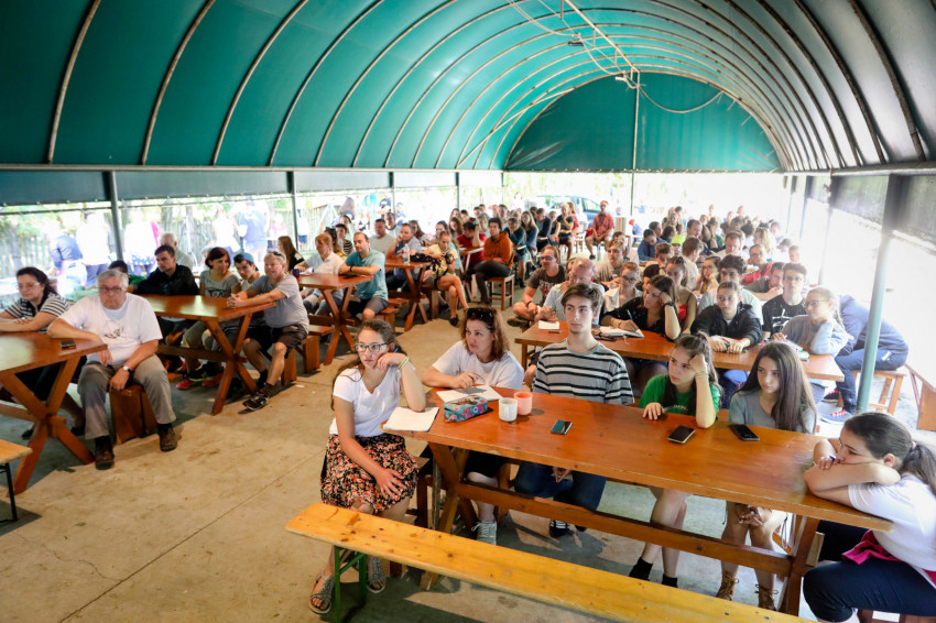 – Így lettem részese kezdettől fogva a Hittanya történetének – emlékezik Finta József. Harminc évvel ezelőtt még csak 30–40-en voltunk a táborban, az elmúlt években (még tavaly, a pandémia közepette is) már folyamatosan száz körüli volt a létszám, idén pedig rekordszámú résztvevő táborozik itt, mintegy százhetven fő.