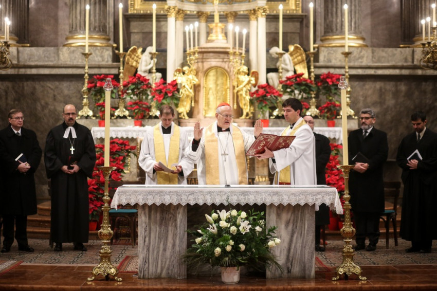 Az ökumenikus imahetet lezáró keresztény–zsidó imaórát 2012 óta szervezi a Keresztény–Zsidó Társaság és az Avilai Nagy Szent Teréz-plébánia. Az idei alkalom elején a hagyományokhoz híven Horváth Zoltán plébános köszöntötte az egyházak vezetőit és a híveket.
