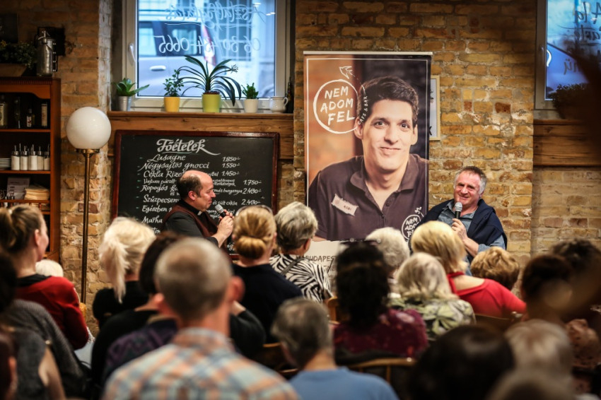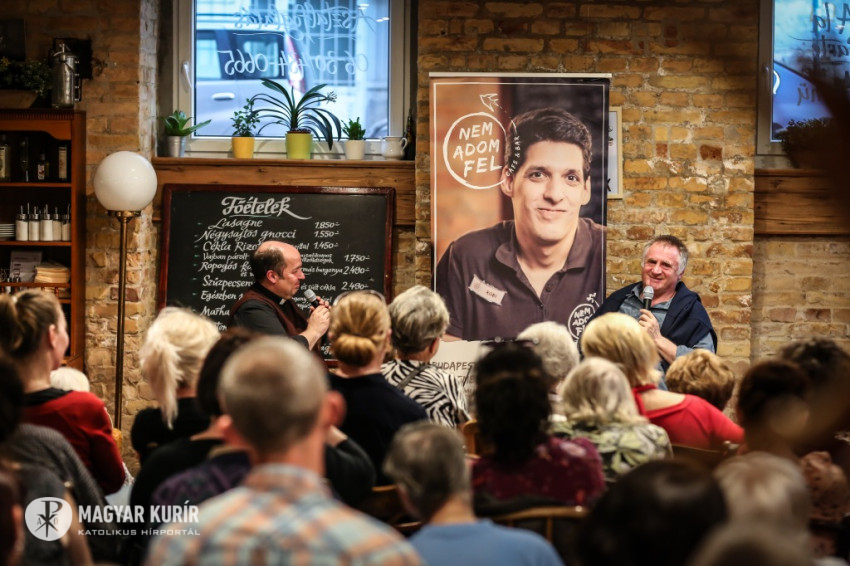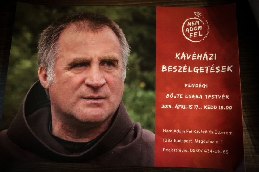 A kávézó alagsora, mint a hasonló rendezvényeken általában, ezúttal is teljesen megtelt. Tóni atya első kérdésére, milyen gyermek volt, milyen vágyai voltak, Böjte Csaba elmondta, papi jelmondata egy kívánság: az emberiség egy nagy családot alkosson, és egymásnak testvérei legyünk. Gyermekként arról ábrándozott, hogy a barátaival sátorvárost alapít, mert nagyszerű érzés lehet közösségben megélni az együvé tartozás örömét. Sokat kirándultak, bejárták az erdélyi hegyeket, letáboroztak a Szent Anna-tónál.