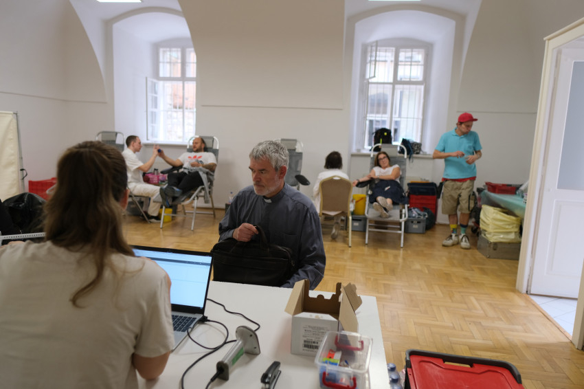 Ezt fontosnak tartva Szeidel Péter, a budapesti Örökimádás templom templomigazgatója is eljött. „Még a honvédség ideje alatt lettem állandó véradó – mondja. – Akkor a katonai szolgálat ideje alatt szabadnap járt a véradásért, ezért lelkesen mentem. De a többieket sem kellett nagyon biztatni. Aztán »szokásommá« vált. Szüleim Székesfehérváron a kórház mellett laktak, közel volt a lehetőség, így később, amikor nyaranta hazajöttem a külföldi tartózkodásomról, mindig elmentem vért adni.”
