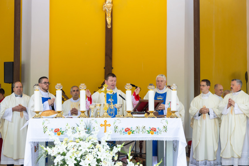 A püspök szentbeszédében hangsúlyozta, hogy „a remény zarándokai vagyunk. Annak a reménynek, amely nem csal meg, mert alapja nem a mi megoldásainkban és eredményeinkben van, hanem Istenben. Szent II. János Pál pápa egyszer így fogalmazott: »Ha Jézus a remény, akkor Mária a remény anyja.« Ma Máriára, a remény anyjára tekintünk, mert ő nyújtja nekünk Jézus Krisztust, a mi reményünket. Tőle akarjuk megtanulni, hogyan ne veszítsük el a reményt még a nagypéntek sötétségében, a kereszt alatt sem. Tőle akarjuk megtanulni, miként állhatunk ellen a világ nagyságfelfogása csábításának, és hogyan fogadhatjuk el Isten működésének logikáját, aki a kicsit és az egyszerűt választja. Követni akarjuk az ő állhatatosságát a reményben.”