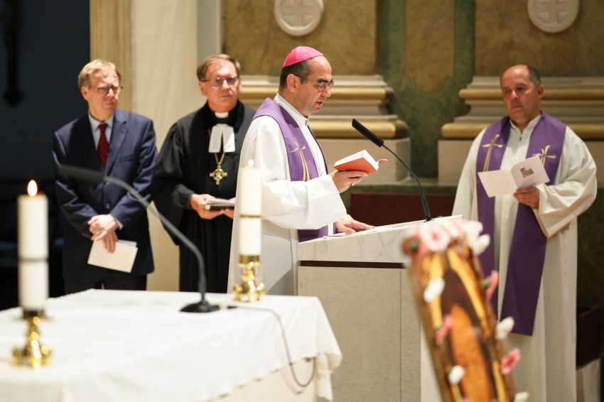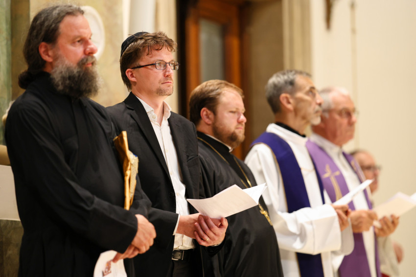Az imádságot Székely János szombathelyi megyéspüspök, a Magyar Katolikus Püspöki Konferencia (MKPK) Caritas in Veritate Bizottságának elnöke vezette. Imádsággal szolgált Fabiny Tamás evangélikus elnök-püspök; Ötvös Joszif görög ortodox parókus a Konstantinápolyi Egyetemes Patriarkátus képviseletében; Dúl Géza, aki 2021-ig a Magyar Katolikus Püspöki Konferencia cigánypasztorációs referense volt; valamint Radvánszki Péter rabbi, aki a zsidóságot képviselte. Az imádságon részt vett Dmitro Szidorenko ukrán ortodox parókus és Michels Antal, a józsefvárosi templom plébánosa.