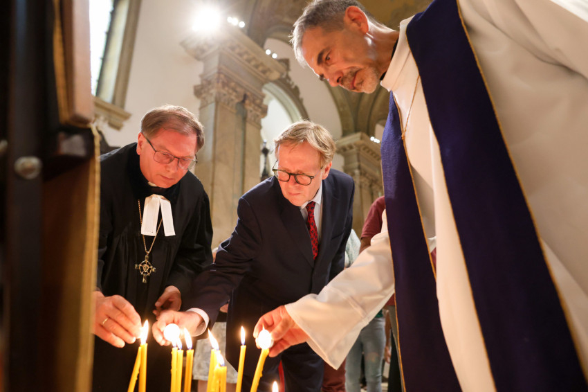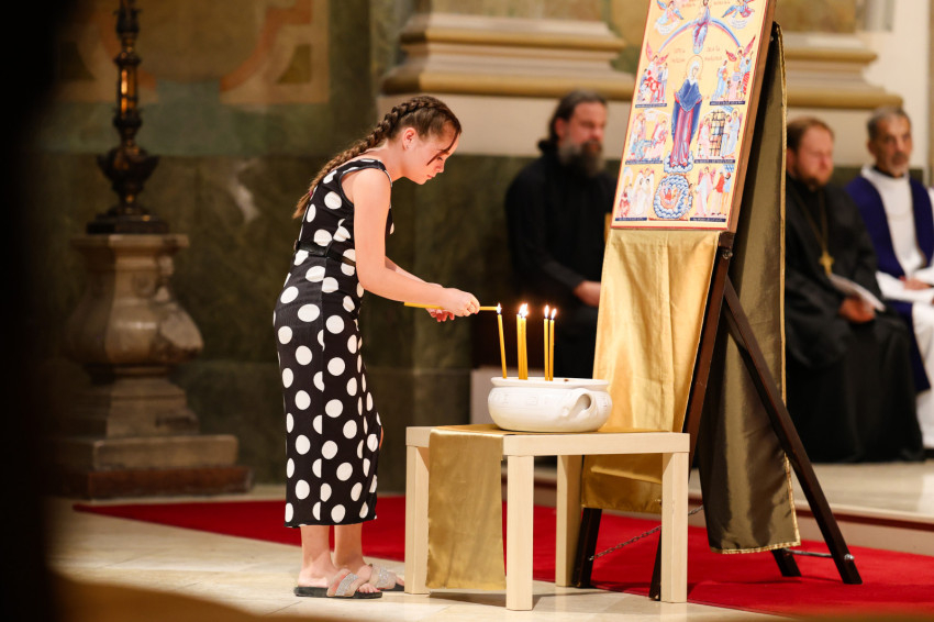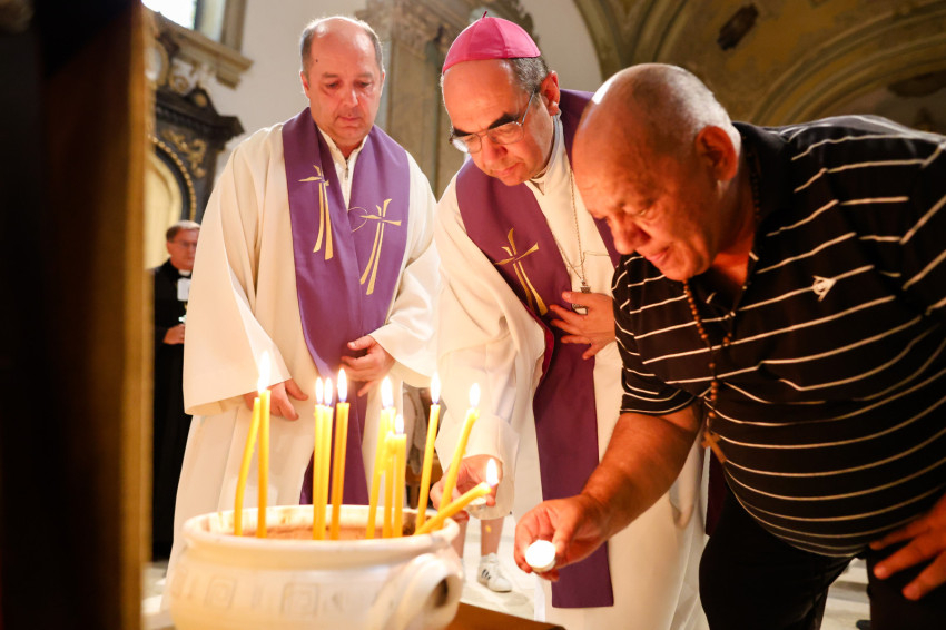 A könyörgéseket követően a közösség kórusának énekével kísérve a hívek mécsest gyújthattak az oltár előtt az áldozatokért.