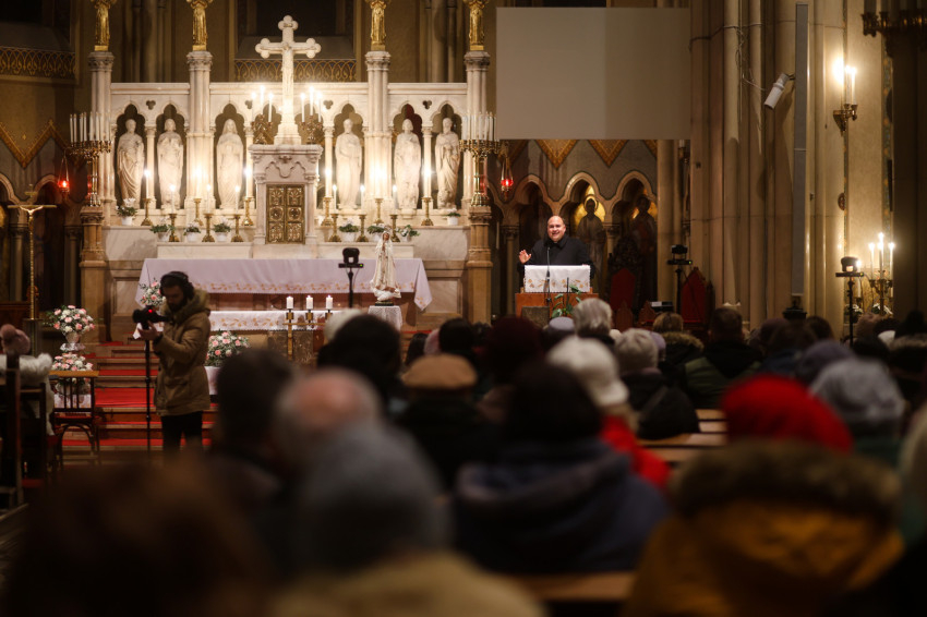 László atya rámutatott: az evangéliumban Jézus többször is beszél a világosságról. Van, amikor magáról mondja: „Én vagyok a világ világossága”, de a hegyi beszédben például így szól híveihez: „Ti vagytok a világ világossága!” S mindkettő igaz. Ő a legfőbb világosság – a húsvéti gyertya is Jézust jelképezi, hogy a világosság legyőzte a sötétséget, az élet erősebb a halálnál –, de mi is világosságra vagyunk teremtve. Ezért van ma a sok gyertya, a sok fény, mert Jézus azt szeretné, hogy mi is világítsunk, szavainkkal, de elsősorban életünkkel. A tízparancsolatban is azt üzeni nekünk Isten, hogyan éljünk, döntsünk életünk határhelyzeteiben, mit kell tennünk azért, hogy elnyerjük az örök életet, s hogy hogyan juthatunk el a bölcsességig, hogy megkülönböztessük a jót a rossztól, a helyest a helytelentől, a fontosat a kevésbé fontostól. Ismerjük fel Isten válaszát. Ebben a tízparancsolat segítségünkre van, mert megadja azokat a mérföldköveket, mankókat, amelyek eligazítanak abban, hogy ne térjünk le a Jóisten felé vezető útról. „Kérjük Szűz Máriát, járjon közben értünk a mennyből, segítsen minket abban, hogy a parancsokat jobban megismerve jobban tudjunk szeretni, és egyre inkább követni tudjuk az Úr Jézust a mennyország felé vezető úton, hogy vele együtt világítsunk, hozzájárulva így ahhoz, hogy itt a földön minél több ember szívében kigyúljon a remény fénye. Ámen.”