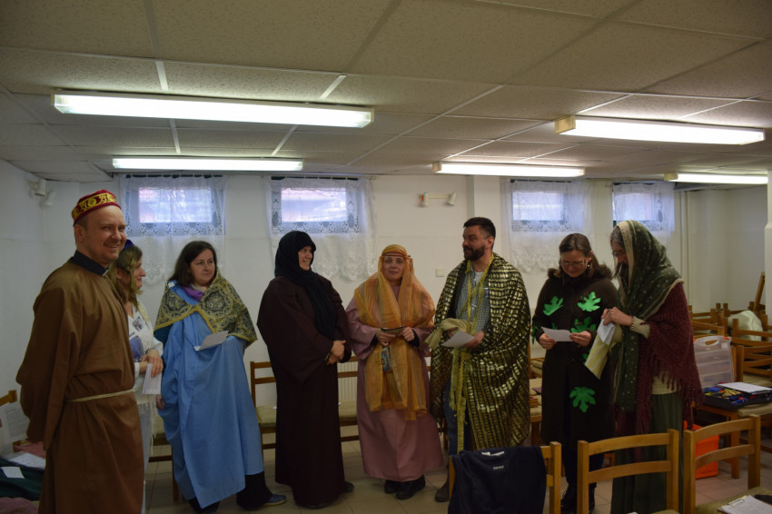 Az ismerkedés után a témára való ráhangolódás következett; először meghallgattuk Isten Igéjét, Jézus és Zakeus találkozását a vadfügefánál, ahogyan azt Lukács leírta. Majd elképzeltük, milyen élmény volt ez a találkozás több fontos és ritkán végiggondolt szempontból: Zakeus hűséges felesége, a vadfügefa, Zakeus elúszott vagyona, egy beosztott vámos, egy károsult özvegy, Zakeus fényűző háza, egy felháborodott farizeus és végül Zakeus szemszögéből.
