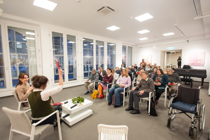 A budapesti könyvbemutatón a költővel G. Tóth Franciska irodalmár, muzeológus beszélgetett. Mivel régóta ismerik egymást, és jó barátnők, a társalgás végig tegező formában zajlott.