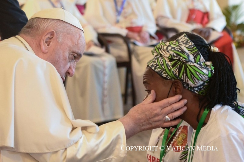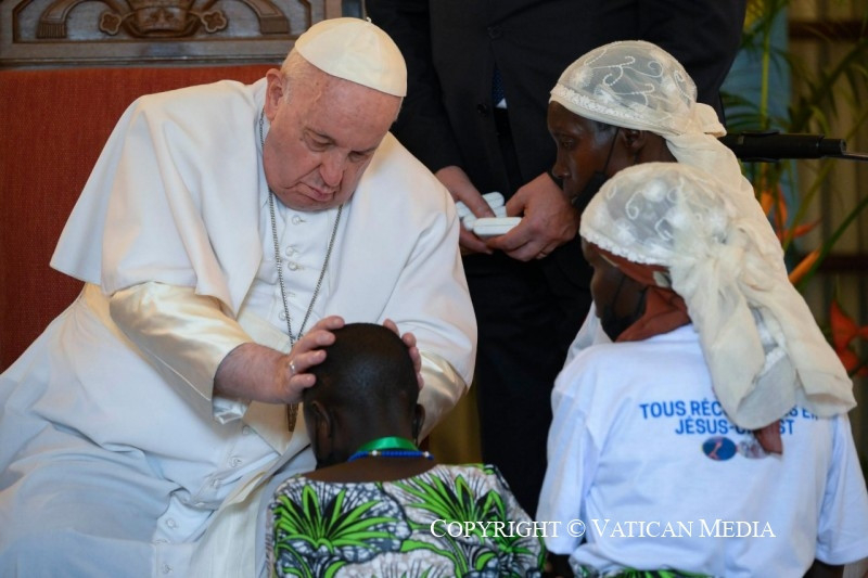 Butembo-Beni, Goma, Bunia, Bukavu és Uvira – erről a négy helyről, a Kongói Demokratikus Köztársaság keleti részén fekvő, fegyveres csoportok fenyegetésében élő, erőszak által sújtott területekről érkeztek az erőszak áldozatai, akik a kinshasai apostoli nunciatúrán tartott találkozón megosztották Ferenc pápával megrendítő történetüket. Szimbolikus gesztusként mindannyian letették Krisztus keresztje alá az eszközöket, amelyekkel kínzóik mérhetetlen szenvedést okoztak nekik.