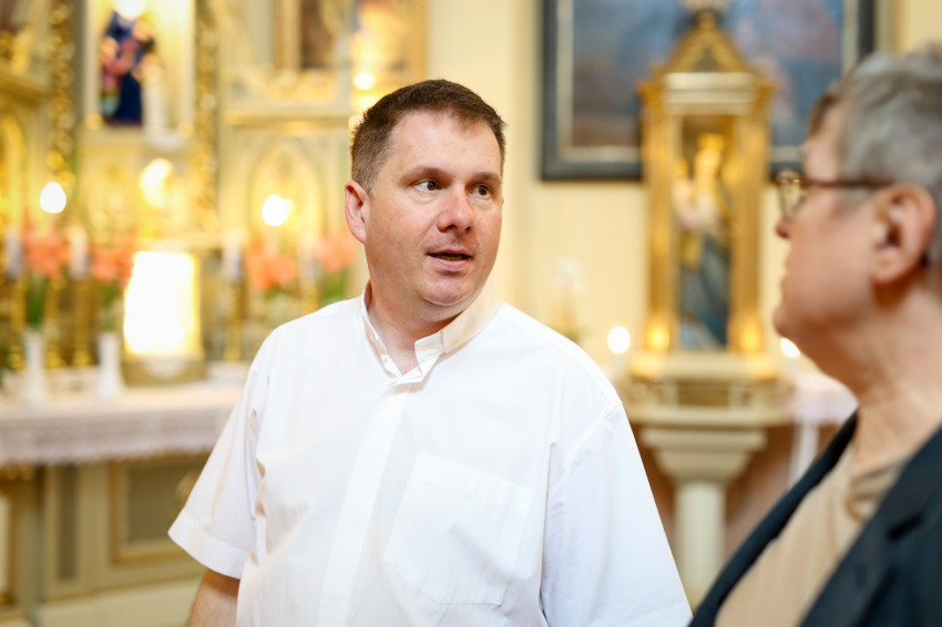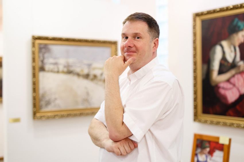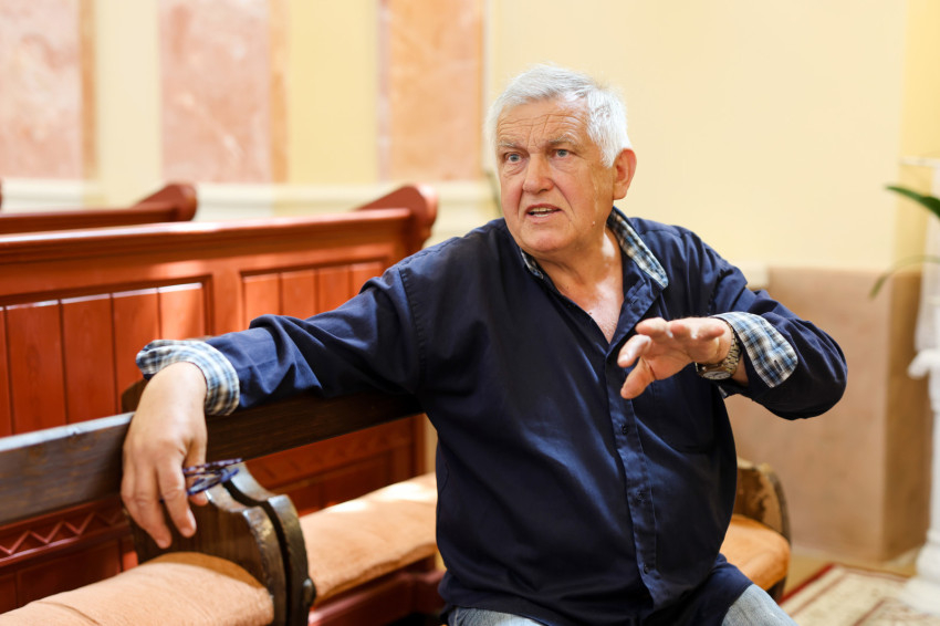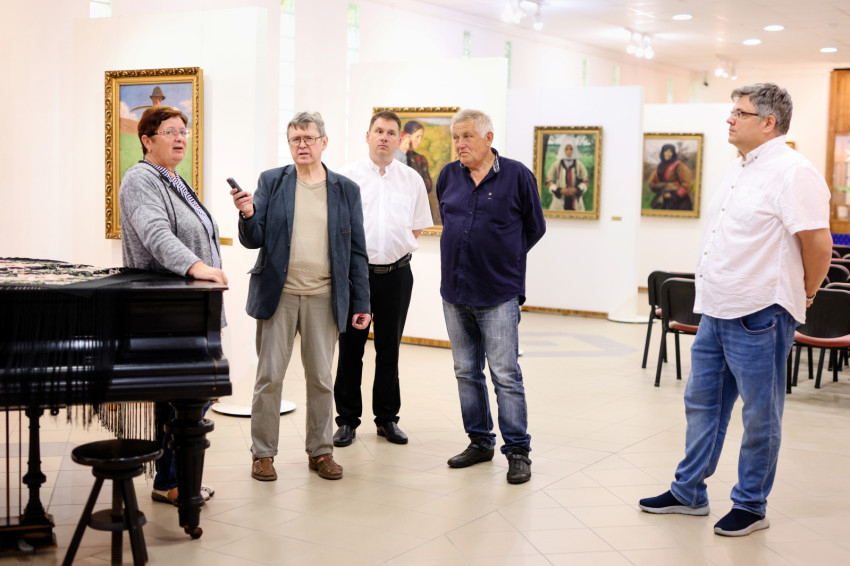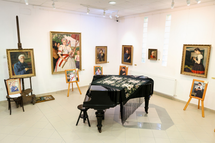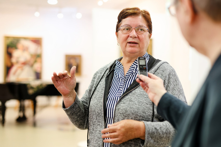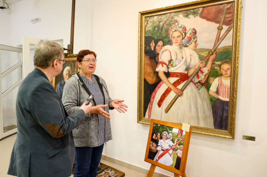 A Glatz Oszkár Művelődési Központ egykori igazgatója öt éve nyugdíjas, azóta ő az állandó tárlatvezető. Nagyon nagy lelkesedéssel és hozzáértéssel mesél nekünk, feltárva a képek keletkezésének történetét is.