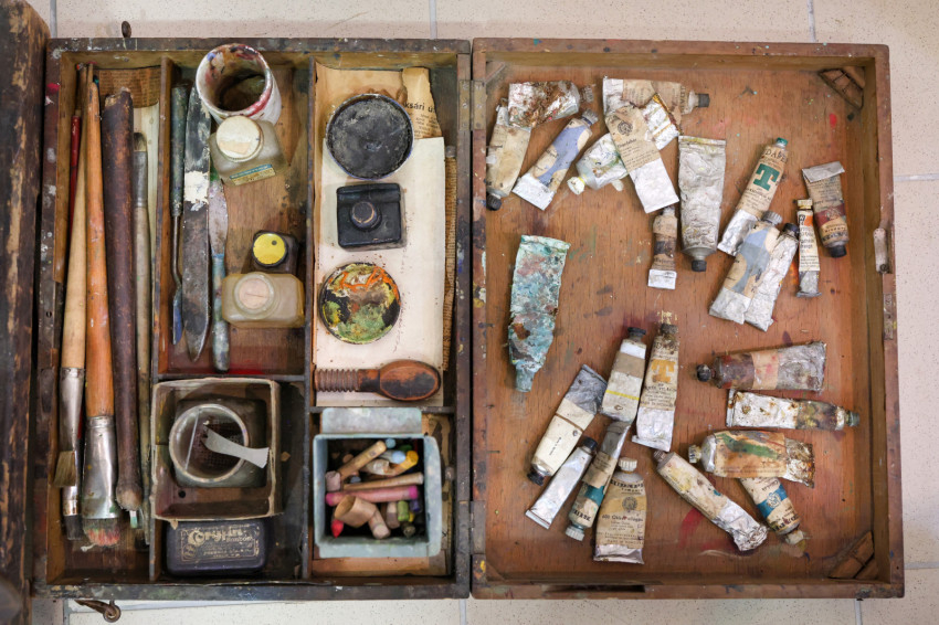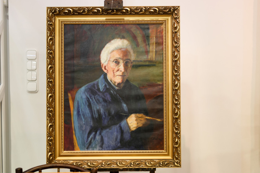 A Két csendélet című festmény Glatz feleségének, Wildner Máriának az alkotása. Bajor család leszármazottja volt, Münchenben, a festőiskolában ismerkedett meg Glatz Oszkárral. A tárlatvezető szerint, ha ő is folyamatosan tanulhatott volna, és ugyanúgy járhatta volna a világot, mint a férje, akkor legalább olyan híres festő válhatott volna belőle. Mivel azonban három gyermekük született, anyaként és feleségként életét a családjának szentelte, s a festéshez olyan témát keresett magának, amihez nem kellett elmenni otthonról. Így főleg csendéleteket festett, bár vannak portréi és tájképei is.