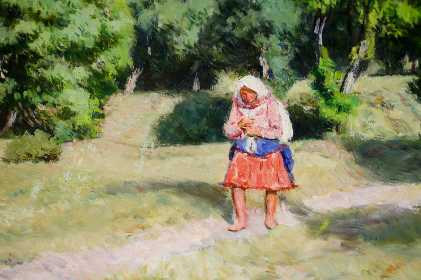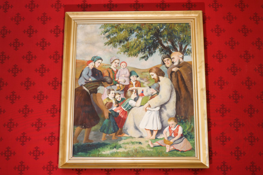 A Vasárnap délután falun című képen egy idősebb nő Bibliát olvas. A központ egykori vezetője elmondta: a vasárnap akkoriban szent volt a falusi emberek számára, a pihenés, a megnyugvás napja. Kicsúfolták azt, aki ezen a napon dolgozott. Vasárnap reggel csak az állataikat etették meg, és kötelességszerűen elmentek a templomba a tízórás nagymisére. Ebéd után az asszonyok beültek a tiszta szobába, és olvasgatták a Bibliát, vagy imádkoztak az imakönyvből.