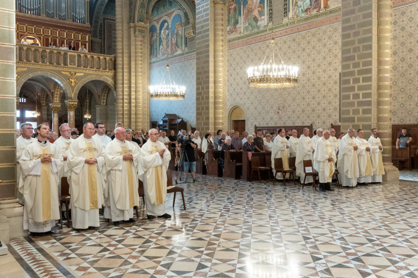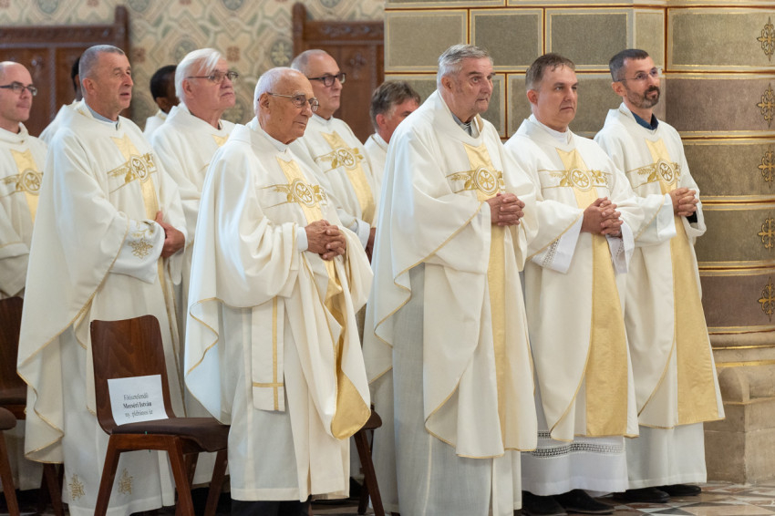 Felföldi László püspök köszöntőjében úgy fogalmazott: hálaadásra gyűltek össze ezen a sokszoros ünnepen, melyben a Pécsi Egyházmegyét és annak ügyeit évtizedeken át hordozó papokat ünneplik.