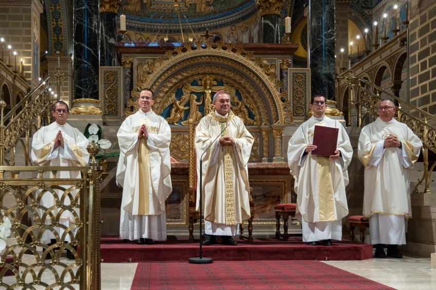 A szentmise az idén jubileumi évfordulót ünneplő papok főpásztori köszöntésével zárult, melyben Felföldi László püspök Isten gazdag, éltető és megerősítő áldását kérte lelkipásztori szolgálatukra.