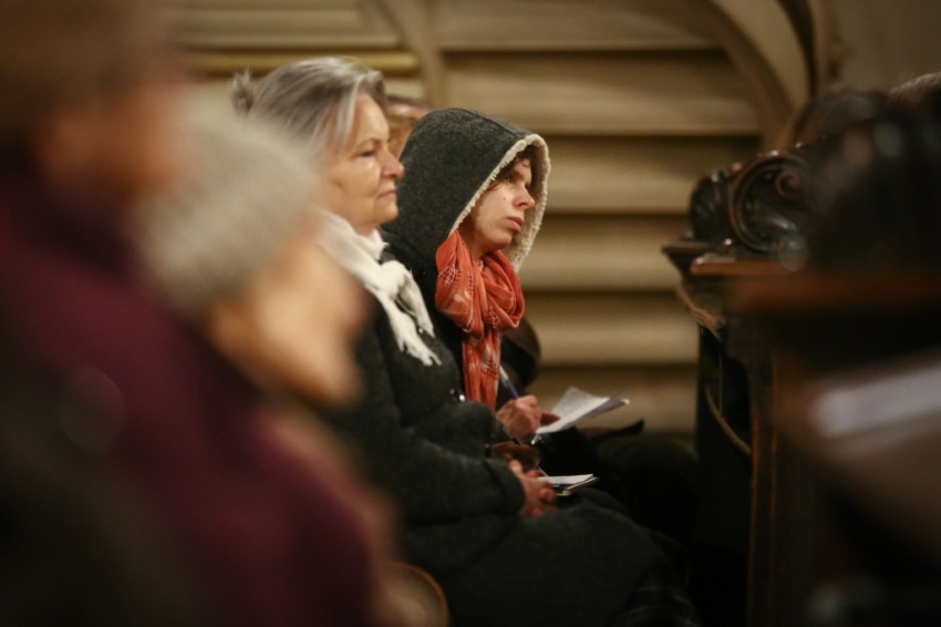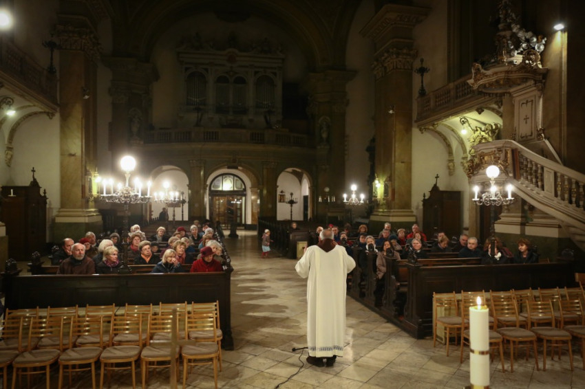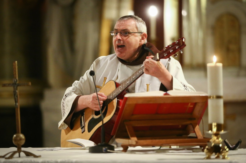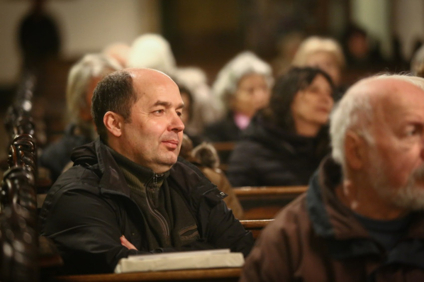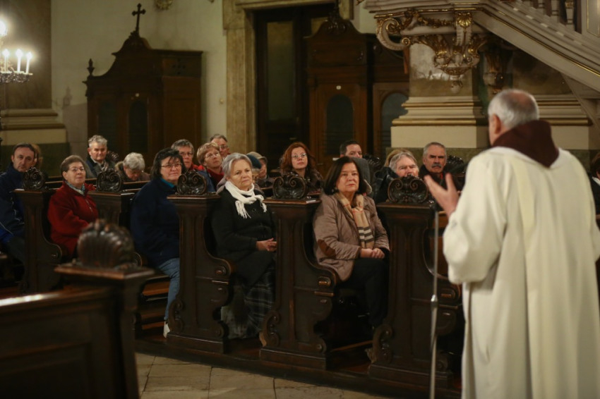 A személyes történetekkel átszőtt előadás után a szerzetes imalapokat osztott szét, amelyek a különböző rózsafüzérek imádkozásához is útmutatást adnak.
