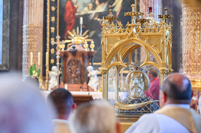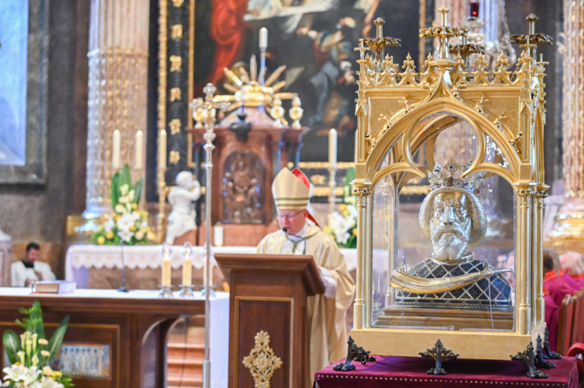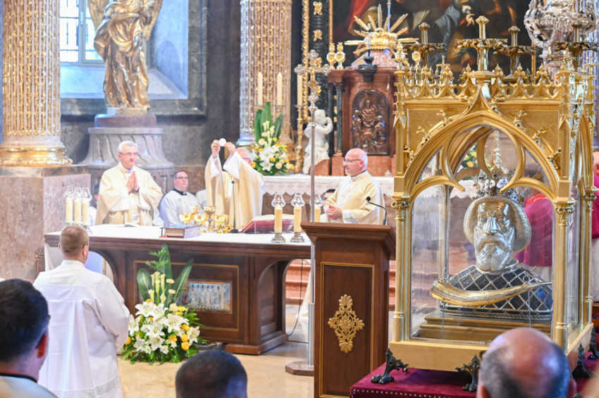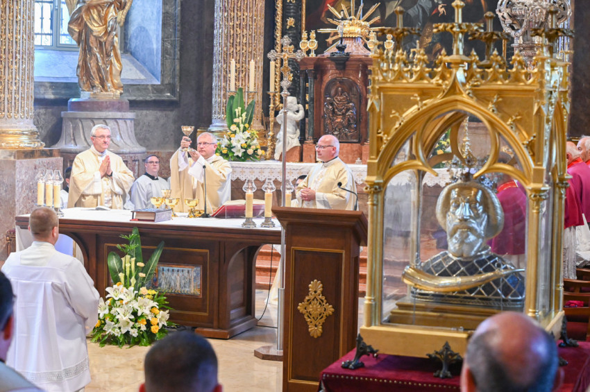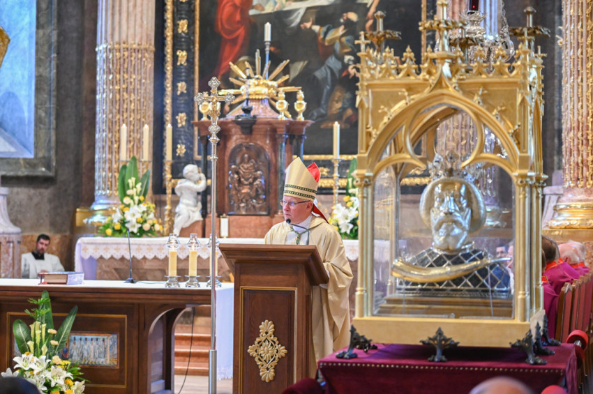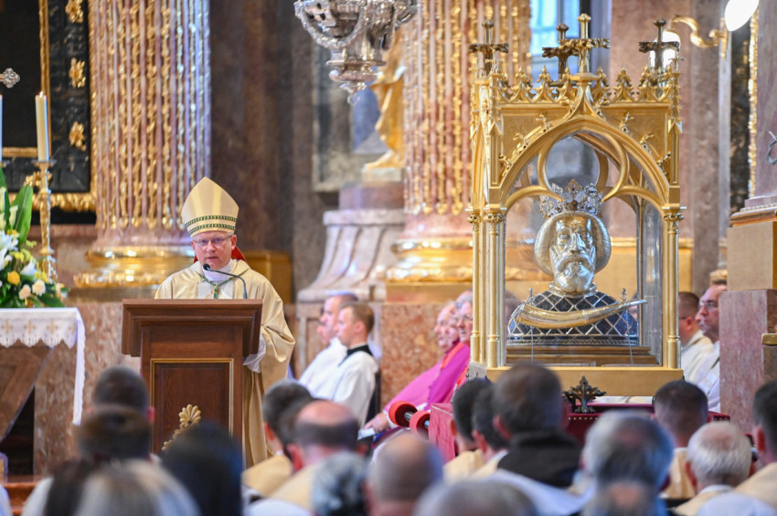 Böcskei László elmondta, Győrbe mindig örömmel jön, hogy kifejezze tiszteletét és ragaszkodását az ország és az egyházmegye építője, Szent László előtt.