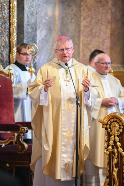 Veres András győri megyéspüspök köszöntötte a helyi közélet vezetőit, az egyetem és a város intézményeinek képviselőit, a zarándokokat, a paptestvéreket és mindenekelőtt Böcskei Lászlót – neve napja alkalmából is.