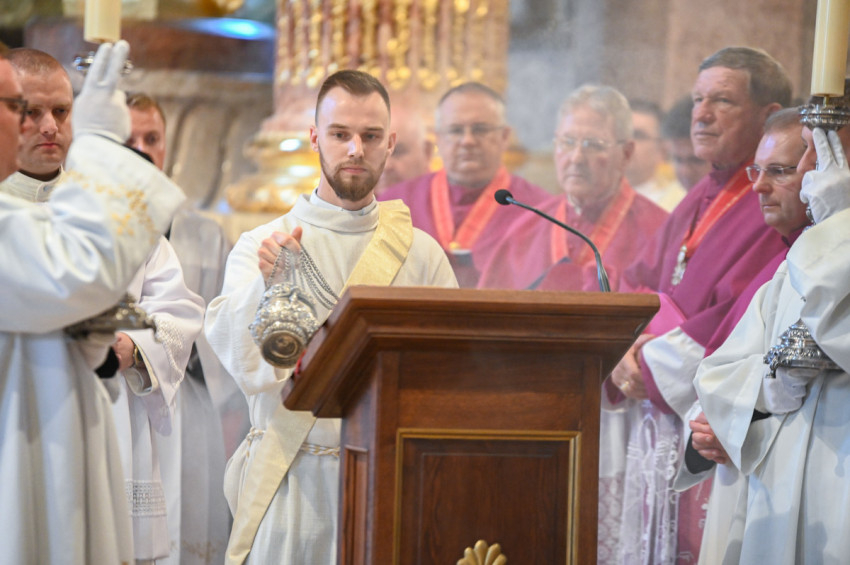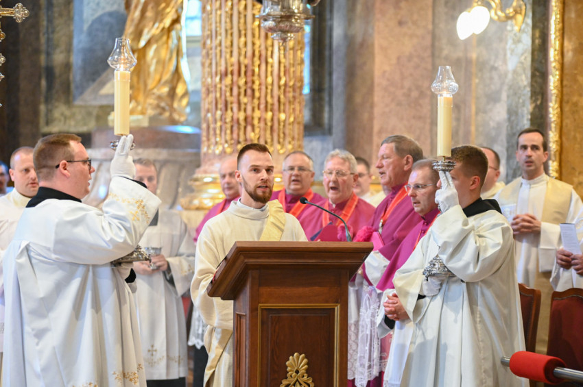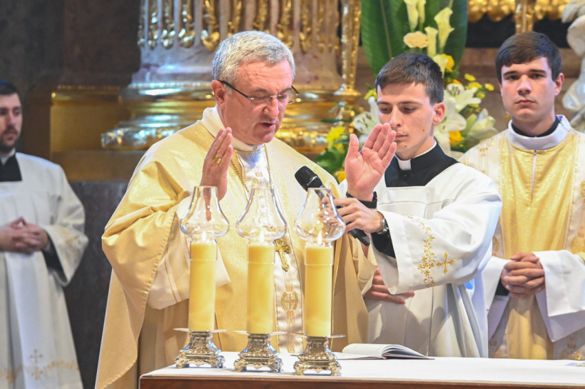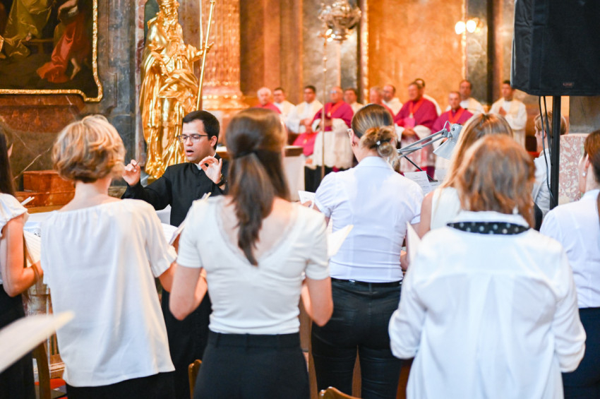 A legszentebb áldozat zenei szolgálatát a győri székesegyház újonnan alakult kórusa látta el Horváth Csaba papnövendék vezényletével. Orgonán közreműködött Ruppert István Liszt-díjas orgonaművész, székesegyházi kántor-karnagy. A szentmisén elhangzottak többek között Antonio Lotti Missa Brevis című többszólamú ordináriumának tételei; Halmos László Ecce Sacerdos; valamint Karai József Ének Szent László királyhoz című kórusműve.