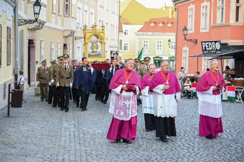 Veres András elmondta: „A székesegyházat két és fél év után újra egykori dicsőségében láthatjuk, ami a lelki kibontakozásunk jelképe is lehet, bízva abban, hogy minél több testvérünk megérti: Isten nélkül nem igazán lehet az ember boldog, nem élhet teljes életet.” A megyéspüspök arra is kitért, hogy Szent László a győriek pártfogója és védőszentje, akinek a sírja Nagyváradon van, hermáját pedig még a törökök elől menekítették onnan Győrbe, a székesegyházba. Hangsúlyozta, ez az ünnep a győrieknek fogadalmi ünnep. A ránk hagyott örökséget kötelességük továbbvinni: imádkozni a városért, annak elöljáróiért és lakóiért.