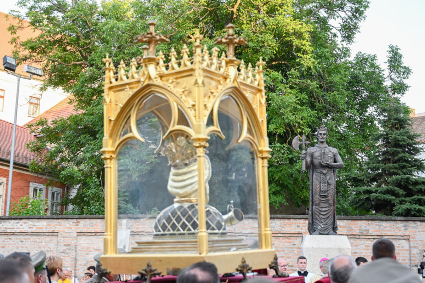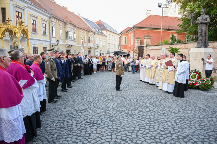 A székesegyház mellett álló Szent László-szobornál a Te Deum után Veres András a lovagkirály oltalmába helyezte Győr városát és az egyházmegye minden lakóját, a családokat, az ifjúságot, a betegeket és a szenvedőket külön is említve.