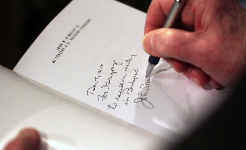 Bartók Tibor SJ beszélt a mű kiadásának előzményeiről; arról, hogyan figyelt fel O’Malley 2008-as írására; mennyire megragadta őt, ahogy a kötet betekintést enged a zsinat munkájába. Elmondta, mekkora öröm, hogy épp most jelenhet meg a mű magyarul, amikor holnap, december 8-án emlékezünk meg a zsinat lezárásának évfordulójáról, és Ferenc pápa megnyitja az irgalmasság szentévét.