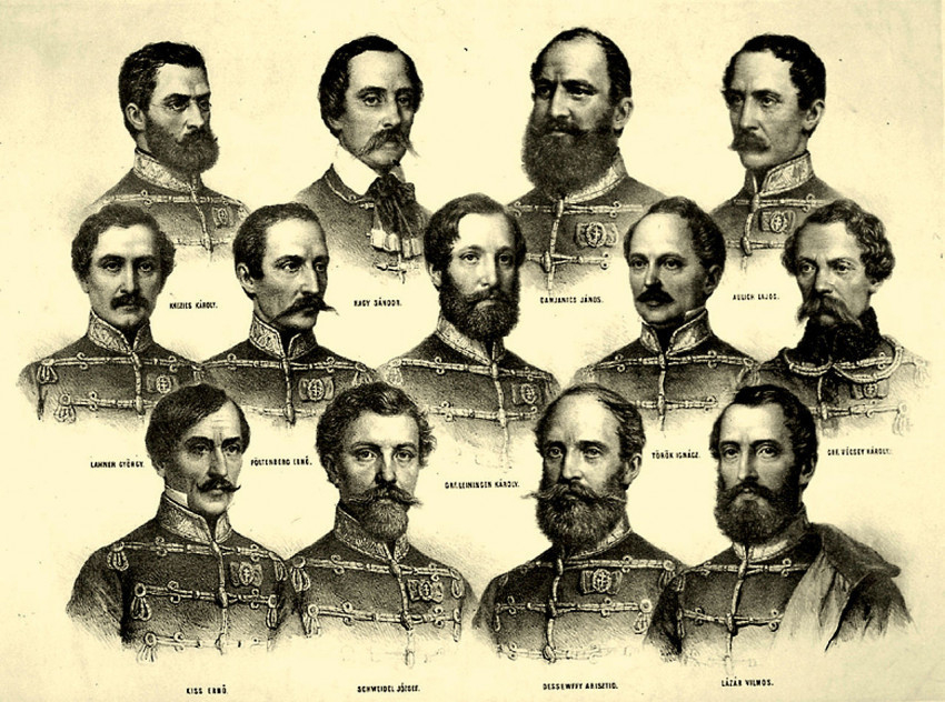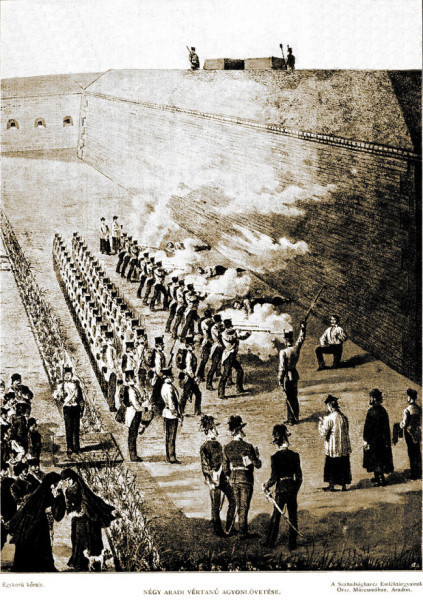 Ugyanezen a napon a szabadságharc tizenkét tábornoka – Aulich Lajos, Damjanich János, Dessewffy Arisztid, Kiss Ernő, Knézich Károly, Lahner György, Leiningen-Westerburg Károly, Nagysándor József, Poeltenberg Ernő, Schweidel József, Török Ignác és Vécsey Károly – és egy főtisztje, Lázár Vilmos ezredes szenvedett vértanúhalált Aradon.