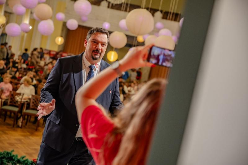 Szeretettel köszöntötte a közel 350 résztvevőt Farkas Gábor, a segélyszervezet munkatársa, aki már a nyitószavaival közösségivé tette az alkalmat. Felhívta a figyelmet: ez a délután most a találkozásról, az örömről és a figyelmességről szól a „Tárjátok ki a szíveteket!” adventi segélyakció részeként. A Karitász budapesti Integrációs Központjához tartozó menekült családok, baranyai felzárkózó településekről érkezett fiatalok és a Kalocsa-Kecskeméti, Székesfehérvári, Váci Egyházmegyék karitászszervezetei által támogatott gyermekek ünnepeltek együtt.