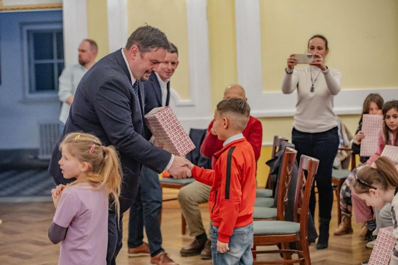 A délután egyik legjobban várt része a névre szóló ajándékok átadása volt. Az angyalbatyuk jelentéséről Zagyva Richárd, a Katolikus Karitász országos igazgatója szólt a gyerekekhez, hogy megfejtsék, miért „angyal” ez a batyu.