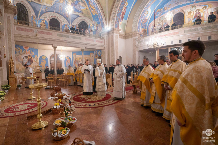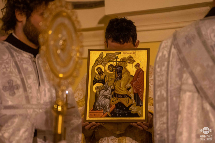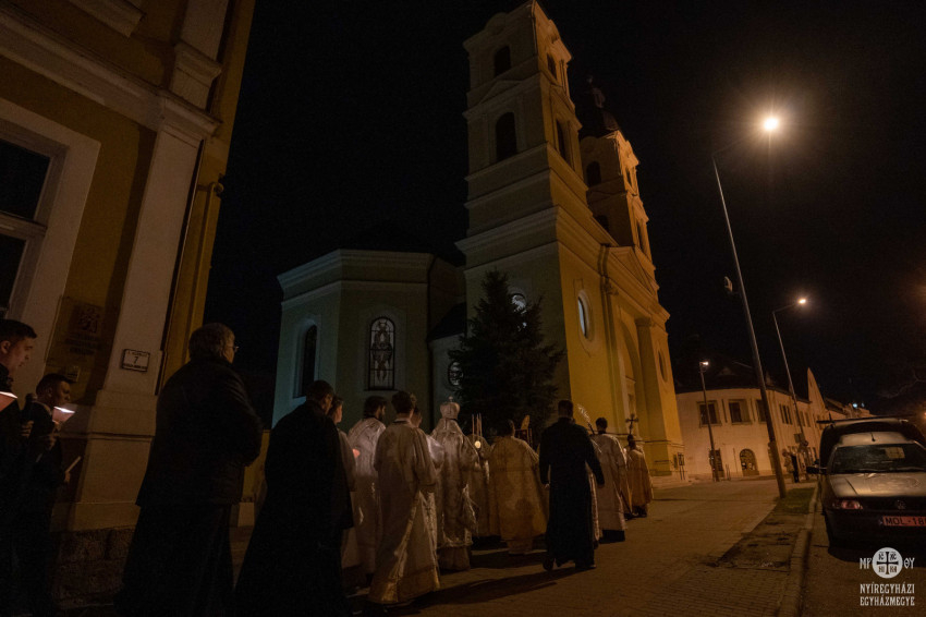A nyíregyházi székesegyházban március 8-án éjfél előtt pár perccel abbamaradt a sírbatételi vecsernye óta tartó virrasztás, szentírásolvasás a Szent Sír előtt. A nagyszombati csendességet a tömjénező csengettyűi törték meg elsőként.