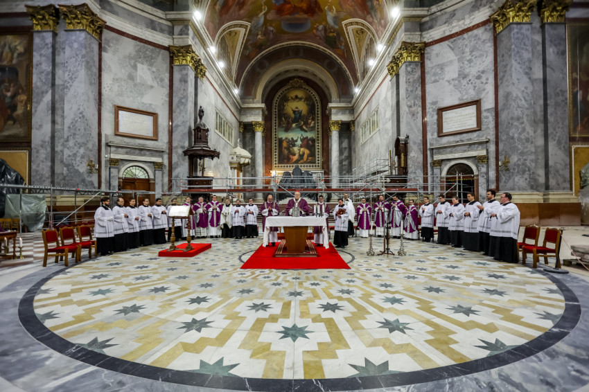 Erdő Péter bíboros, prímás február 22-én, nagyböjt első napján, hamvazószerdán az esztergomi bazilikában mutatott be szentmisét az Érseki Papnevelő Intézet elöljáróinak koncelebrálásával.