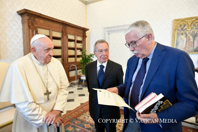 Köszöntelek benneteket, s köszönöm nektek ezt a találkozót és az „È giornalismo” díj átadását. Tudnotok kell, hogy én, mielőtt Róma püspöke lettem volna, mindig visszautasítottam a díjakat. Sosem kaptam, nem akartam. Pápaként is így tettem. Van azonban egy ok, mely arra késztetett, hogy elfogadjam a tiéteket, mégpedig a konstruktív kommunikáció sürgőssége.