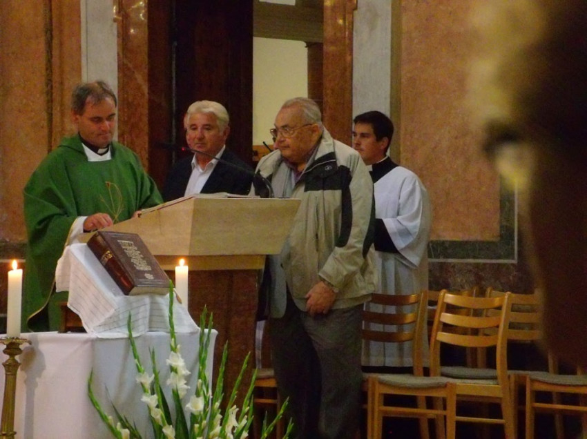 Az ószövetségi olvasmányt Bőzsöny Ferenc, a Mindszenty Társaság egyik alapítója olvasta fel: „Mózes az Úr parancsára kiválasztott hetven férfit, hogy a nép kormányzásában segítségére legyenek. Az Úr pedig alászállt a felhőben, szólt Mózeshez, elvett a rajta levő lélekből és a hetven vénnek adta… Két ember viszont a táborban maradt; az egyiket Eldadnak, a másikat Medadnak hívták. Rájuk is alászállt a lélek; ők is a vének közé tartoztak, de nem mentek oda a sátorhoz.”