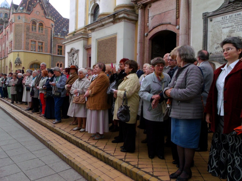 A szentmisét követően a hívek a templom elé vonultak. A megjelenteket Lévai Jánosné önkormányzati képviselő, az egyházügyi munkacsoport vezetője üdvözölte. Köszöntőjében úgy fogalmazott: céljuk, hogy Mindszenty bíboros szellemi hagyatékát ne csak megőrizzék, de városuk közkincsévé tegyék.