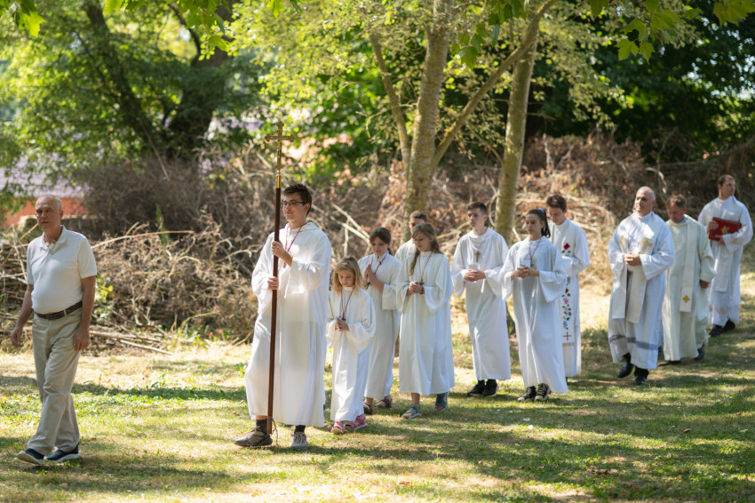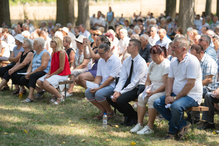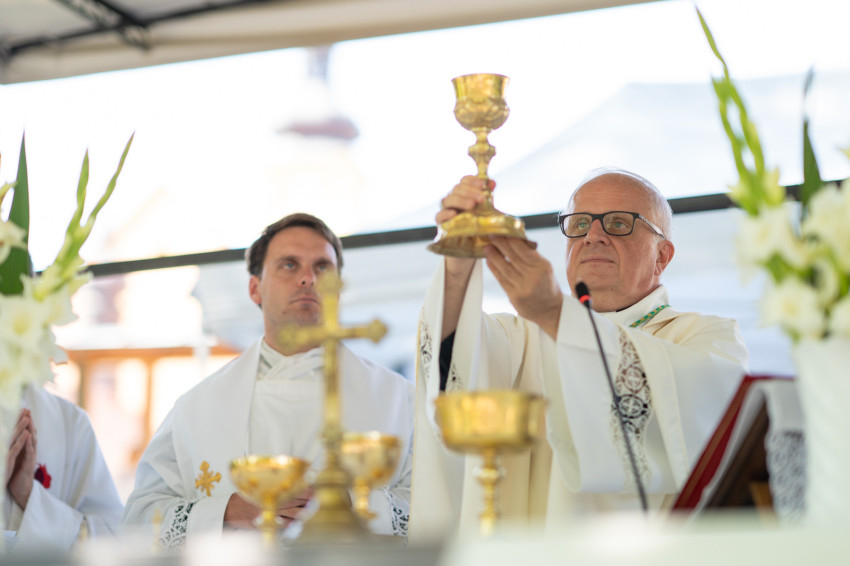 Mint tudjátok, én vagyok az apostoli nuncius, a Szentatya személyes képviselője, nagykövete Magyarországon. XIV. Leó pápa nevében köszöntelek benneteket, biztosítva titeket közelségéről és imájáról – kezdte prédikációját Michael Wallace Banach. – Leó pápa örömmel küldi atyai áldását mindannyiótokra. Köszöntöm az andocsi bazilika plébánosát, Kálmán atyát, megköszönve szíves meghívását, hogy ismerjem meg plébániátokat és részt vegyek Mária mennybevételének gyönyörű ünnepén. Üdvözlöm a polgári hatóságok képviselőit is, különösen polgármester asszonyt!