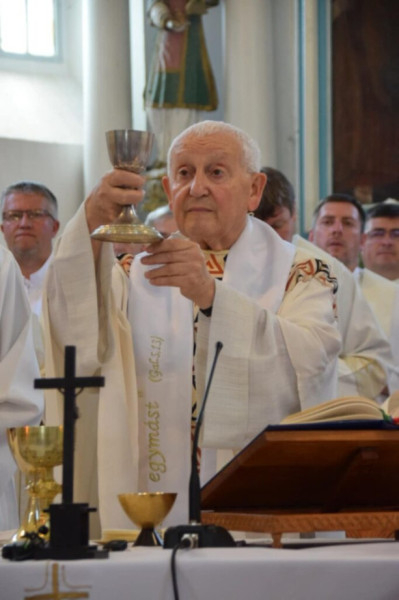 A helyi plébános köszöntő szavai után a marosi kerület főesperese, Péter Arthur tolmácsolta az egyházmegye főpásztora, Kovács Gergely gyulafehérvári érsek és Kerekes László segédpüspök köszöntő szavait, akik köszönetet mondtak nemcsak az elfogadott hivatásért, a példaértékűen megélt papi életéért, hanem mindazokért a vállalt feladatokért is, amelyek elvégzésével fáradhatatlanul és alázattal szolgálta az Egyházat – a 44 évig tartó gyulafehérvári papnevelést, a világi hitoktatók oktatását az általa elindított levelező teológiai képzésben, a vezetése alatt kibontakozó kolozsvári fakultáson, egyháztörténészi munkáját, benne főleg Márton Áron püspök életének szakmai feldolgozásával.