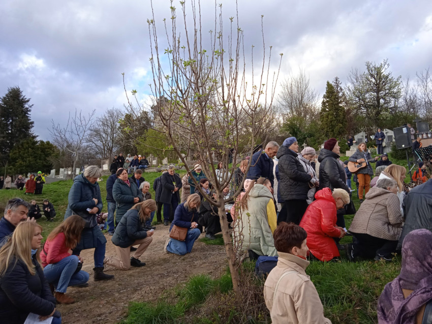 Az idei keresztutat a békéért ajánlották fel. Taizéi énekek, rövid, mély elmélkedések teremtettek összeszedett, természetfeletti légkört, miközben a hívek egyre feljebb jutottak a dombon – megállva útközben a Jézus szenvedését jelképező 14 fakereszt stációnál – egészen a temetőkápolnáig.