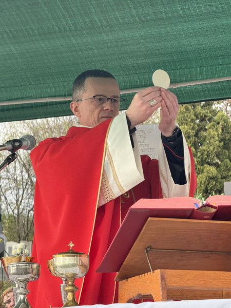 A szabadtéri szentmise prédikációjában Lucsok Miklós a Getszemáni-kertben vérrel, verítékkel szenvedő Jézus képétől indult, aki kérte az Atyát, hogy ha lehet, vegye el tőle a szenvedésnek ezt a kelyhét, de ugyanakkor teljesen rábízta magát az Atya akaratára. Aláhúzta, hogy a szenvedés nem Istentől ered, az a bűn következménye. Isten meghagyja az ember szabadságát, ezért „ha valaki rosszat akar tenni, akkor még magát az Istent is keresztre tudja feszíteni. De ebben a szörnyűségben megjelenik nekünk Isten ereje és szeretete. A végső szó nem a fájdalomé, a gyűlöleté, a halálé, hanem a győzelemé. Krisztus legyőzte a bűnt, legyőzte a Sátánt” – mondta a püspök. Aztán a tanítványokról szólt, akiket Jézus megkért, hogy virrasszanak vele és imádkozzanak, hogy kísértésbe ne essenek. De ők elaludtak. „Milyen kísértésbe esünk, amikor szenvedünk?” – tette fel a kérdést a főpásztor.