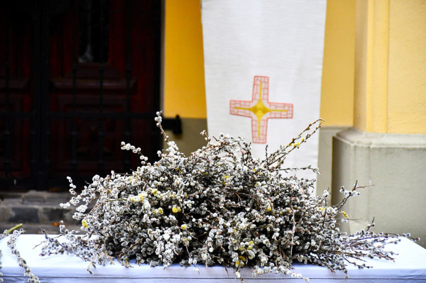 Az ünnepi liturgia kezdetén Kerekes László püspök megáldotta a pálma- és barkaágakat, majd Ferencz Egon József diakónus felolvasta a jeruzsálemi bevonulásról szóló evangéliumi részt.