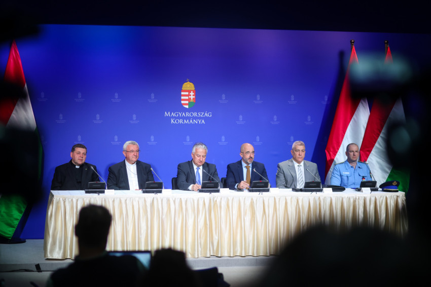 A sajtótájékoztatót Semjén Zsolt miniszterelnök-helyettes, a pápalátogatás előkészítésének kormányzati felelőse, valamint Veres András győri megyéspüspök, a Magyar Katolikus Püspöki Konferencia (MKPK) elnöke, Tóth Tamás, az MKPK titkára, a pápa magyarországi apostoli látogatásának általános koordinátora, Kovács Zoltán nemzetközi kommunikációért és kapcsolatokért felelős államtitkár, a pápalátogatásért felelős operatív törzs vezetője, Hajdu János, a Terrorelhárítási Központ (TEK) főigazgatója és Kuczik János Zoltán, az országos rendőrfőkapitány rendészeti helyettese tartotta.