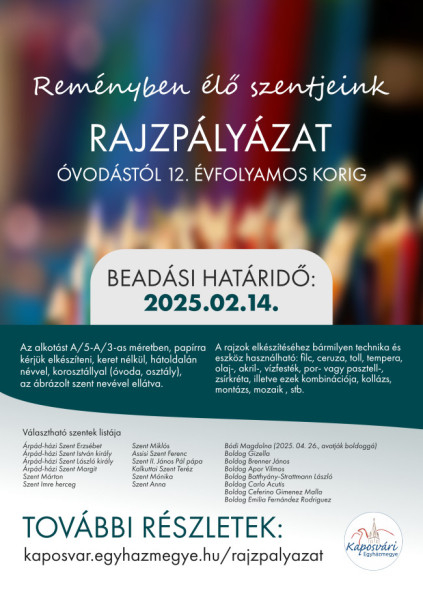 A pályázattal kapcsolatosan bővebb felvilágosítás kérhető Farkasné Magyar Anikótól a mentor.kaposvar@katolikus.hu címen.