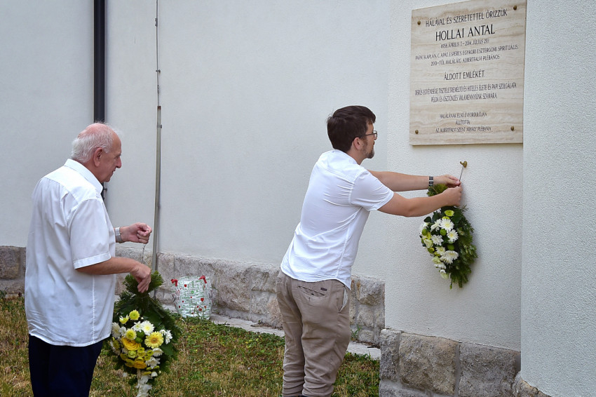 A közösség tagjai a szentmisét követően a Hollai Antal tiszteletére és halálának első évfordulóján felavatott emléktábla előtt gyűltek össze, ahol elhelyezték az emlékezés koszorúit, közösen imádkoztak és énekeltek, kifejezve szeretetüket, valamint hálájukat Antal atya életéért és papi szolgálatáért.
