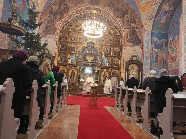 Orosz Atanáz megyéspüspök részvételével vezette a Szent Liturgiát az év első napján a miskolci székesegyházban Szemerszki Mihály, a székesegyház parókusa.