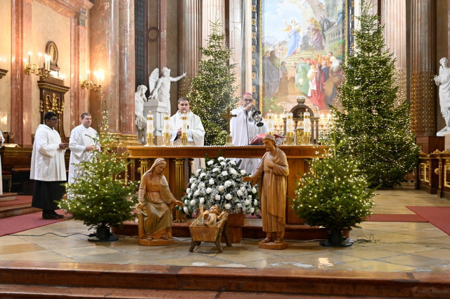 Kiemelte: a Gyermekre úgy tekintünk, mint akiben Isten maga jött el hozzánk. Ha megértjük, hogy velünk az Isten, akkor be kell fogadnunk, helyet kell adnunk szívünkben és lelkünkben neki. Ő egész életünk Ura akar lenni.