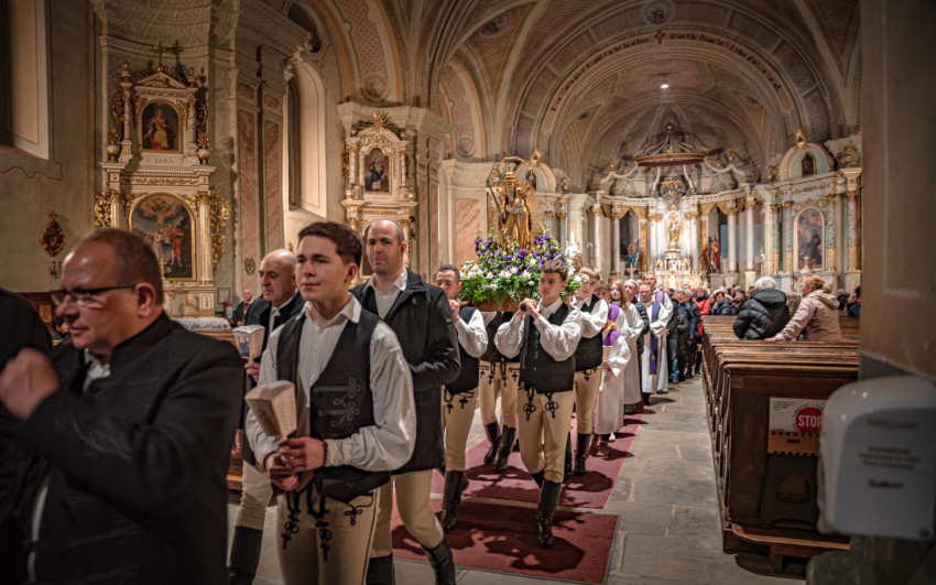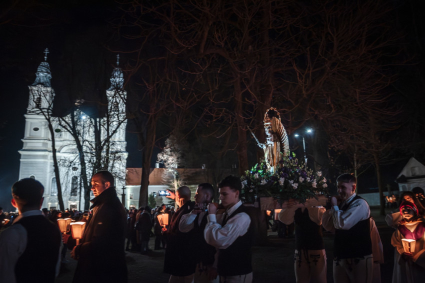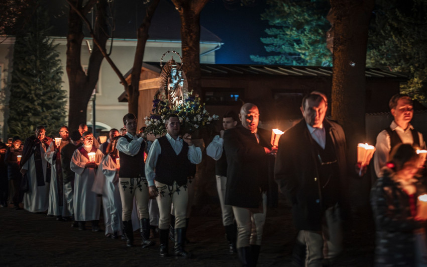 A szentmise után ugyancsak a kadicsfalvi-bethlenfalvi hívek vezetésével a fájdalmas olvasót imádkozták a zarándokok. A gyertyás körmenetben viseletbe öltözött fiatalok vitték a Szűzanya kegyszobrának másolatát.