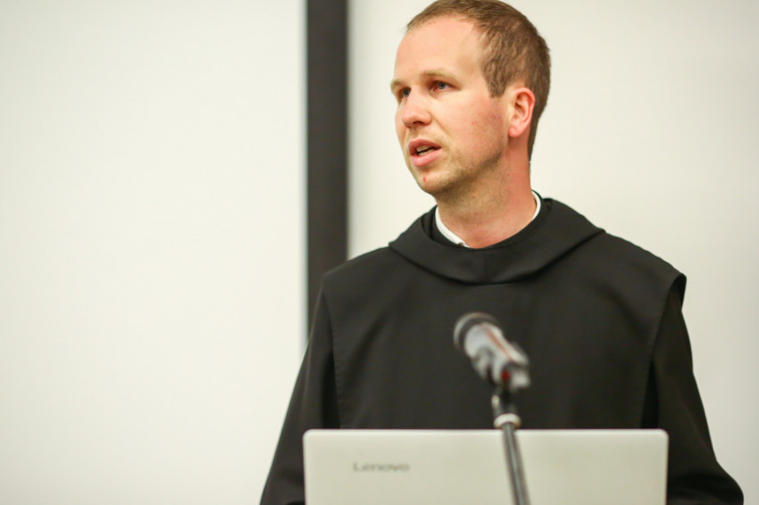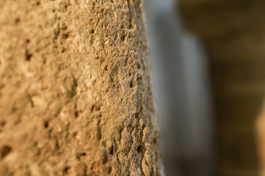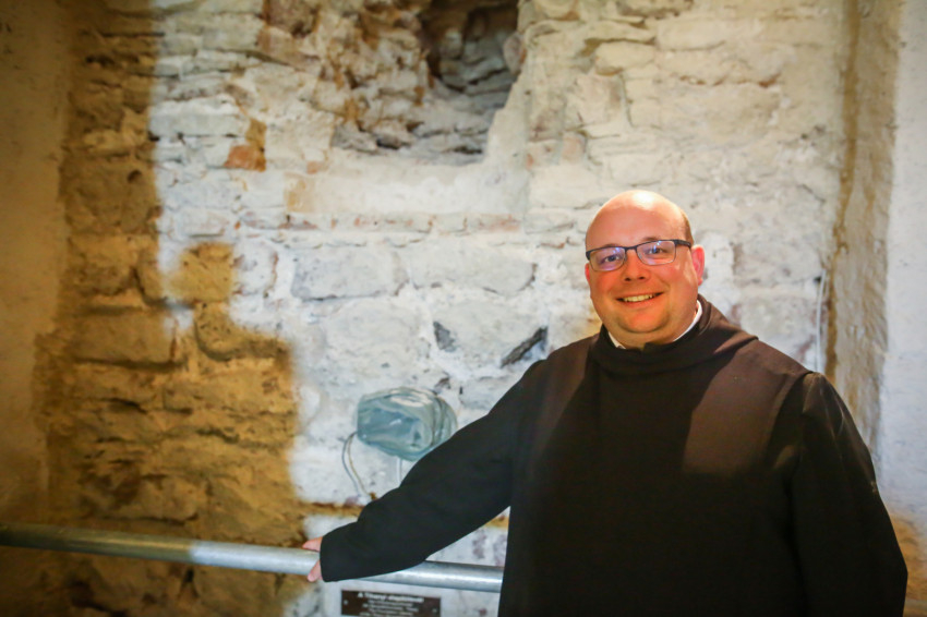 Mivel a falkutatást végző Simon Anna nem tudott részt venni a sajtótájékoztatón, Takács Ágoston olvasta fel a rövid beszámolót, amely a középkori falazat, illetve a vakolatréteg szondázásról szólt. Simon Anna műemléki szakértőként a kripta legkorábbi részleteinek minél pontosabb bemérésével és feltérképezésével foglalkozik. A munkálatok keretében többek között kibontották az egykori kolostori átjárót, a nyugati oldalon, a barokk kori fülke mögött pedig annak középkori előzményét gyanítja, ami egy apró, a királyi szentélybe betekintést engedő ablaknyílás lehetett.
