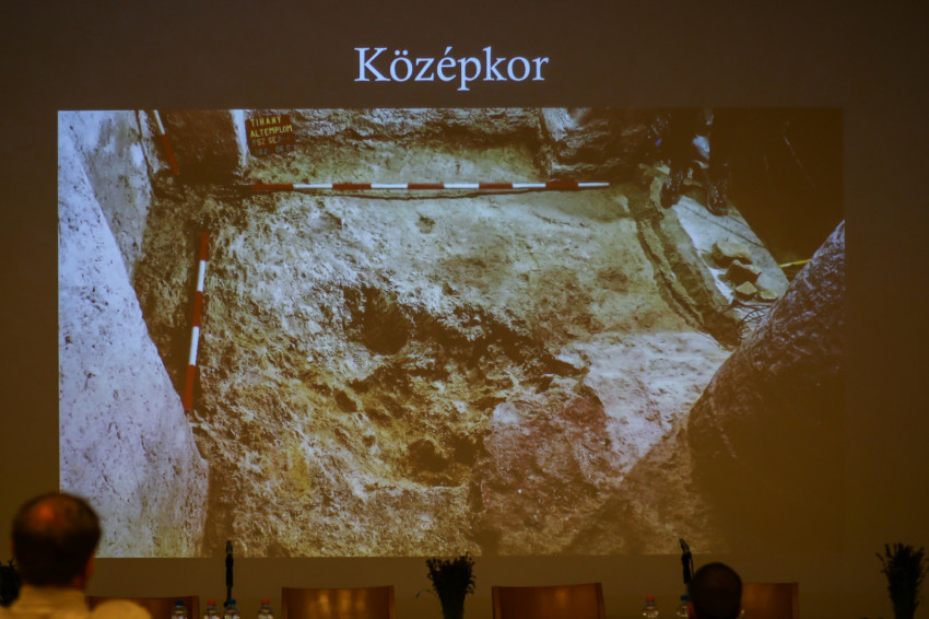 Takács Ágoston vezető régész, bencés öregdiák az 1055-ben alapított apátság építéstörténetének fontosabb állomásait villantotta fel: 1526 után végvárrá alakították, 1701-ig hadi célokat szolgált; eredeti rendeltetését visszanyerve, 1720 és 1760 között a visszatért bencések barokk stílusban építették újra. Az apátságot 1899-ben felújították, a királykripta historizáló díszítőfestést kapott, amit akkor távolítottak el, amikor 1953-ban sor került az altemplom említett részleges régészeti feltárására. A jelenleg zajló munka friss eredményeit az időben és az ásatási rétegekben visszafelé haladva László Gyula és Nagy Emese kutatásaitól mutatta be. A visszatemetett földrétegből a 19. századi színes, festett vakolat számtalan töredéke került elő. A 18. századra egy I. Lipót idejéből való, magyar veretű pénzérme és egy korabeli mellkereszt utal. A 16–17. század végvári küzdelmeiről lőszermaradványok, szakállas puskákhoz használt ólomgolyók tanúskodnak. Az altemplom középkori átalakítását valószínűsíti az a Luxemburgi Zsigmond-kori parvus (ezüstérme), amelyet a napokban találtak meg a régészek az ásatási területen. Egy ponton pedig sikerült rálelni a kripta 11. századi járószintjére, a kőpor felhasználásával öntött padló maradványaira is.