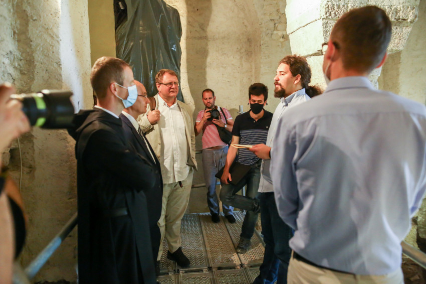 Június 14-én az eddig elvégzett munkák eredményeiről tartottak sajtótájékoztatót az apátság látogatóközpontjában. A Tihanyi Bencés Apátsági Múzeum igazgatója, Barkó Gábor Ágoston vezette be az egyórás – terepbejárással záruló – programot. Először Mihályi Norbert Jeromos perjel kapta meg a szót, aki Lécs Ágoston tihanyi apátnak, a barokk templom építtetőjének portréján szereplő feliratra utalva a „supra firmam petram”, vagyis a „szilárd kősziklára” emelt, királysírt őrző apátság nemzeti és kulturális értékéről, az itt imádkozó bencés közösség aktív spirituális jelenlétéről szólt. Az immár ténylegesen is a „tihanyi sziklaalapot” érintő multidiszciplináris kutatás jelentőségét méltatta, amelynek célja, hogy a kripta – múltjának mélyreható megismerését követően – kutatóinak szakmai konszenzusával a lehető leghitelesebben újuljon meg.
