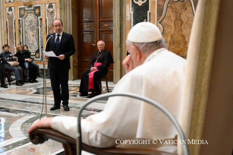 Köszönöm Anna Maria Tarantola és Franco Anelli professzorok kedves szavait, és üdvözlöm a Centesimus Annus Pro Pontifice Alapítvány és a Katolikus Kutatóegyetemek Stratégiai Szövetségének tagjait.